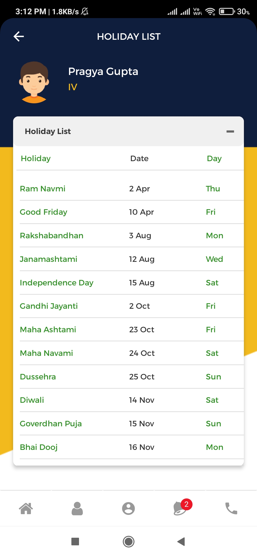 School app enables parents to check upcoming holidays of school for their holiday planing.